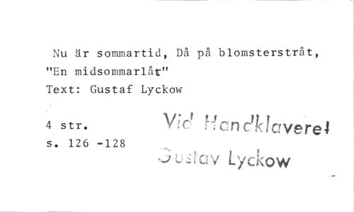 //// Nu är sommartid, Då på blomsterstråt, "En midsommarlåt" //// Text: Gustaf Lyckow //// 4 str. Vid Handkiaver& //// s. 126 -128 //// Lyekow ////