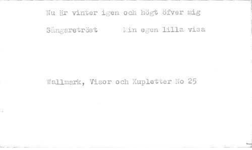 //// Nu är vinter igen och högt öfver mig Sängaretröst 1J.n egen lilla visa //// Wallmark, Visor och Kupletter No 25 ////