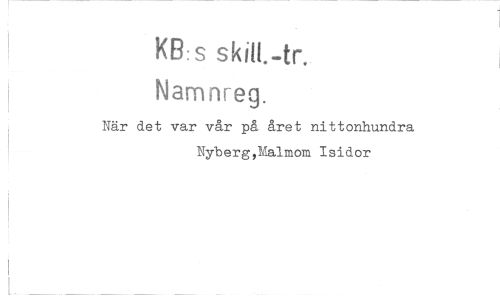 //// KB:s skill.-tr. //// Namnreg. //// När det var vår på året nittonhundra Nyberg,Malmom Isidor ////