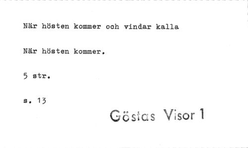 //// När hösten kommer och vindar kalla När hösten kommer. //// 5 str. //// 8. 13 //// G icLQ Visor 1 ////