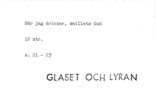 //// När jag dricker, snillets Gud 12 str. //// s. 21 - 23 //// GLASET OC; LYRAN ////