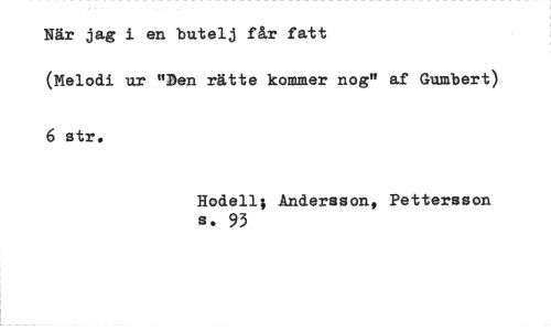 //// När jag i en butelj får fatt //// (Melodi ur "Den rätte kommer nog" af Gumbert) 6 str. //// Hodell; Andersson, Pettersson s. 93 ////