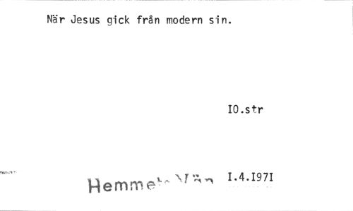 //// När Jesus gick från modern sin. //// IO.str //// l v;,N 1.4.1971 //// 1-lernrne ////