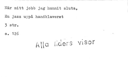 //// När mitt jobb jag hunnit sluta, //// En jazz uppå handklaveret //// 3 str. //// s. 126 //// lAtla i:ders visor ////