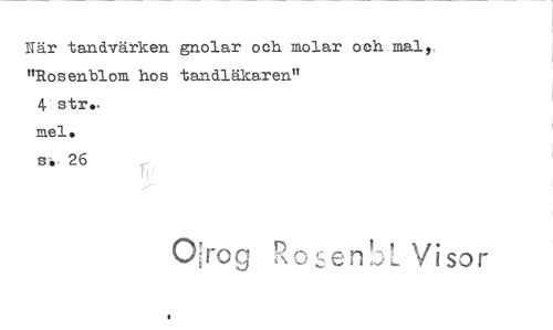 //// När tandvärken gnolar och molar och mal2, "Rosenblom hos tandläkaren" //// 4 str, //// mel. //// s4: 26 //// Oiro n• //// cen .,;1 Visor ////