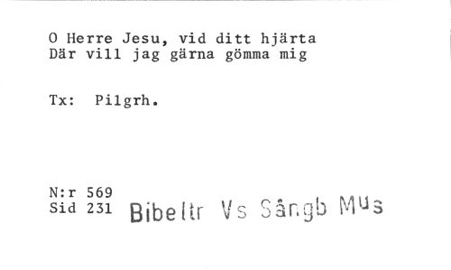 //// 0 Herre Jesu, vid ditt hjärta Där vill jag gärna gömma mig //// Tx: Pilgrh, //// N:r 569 //// Sid 231 n •L //// DlUe i/ tr Vs Sånrib Mus ////
