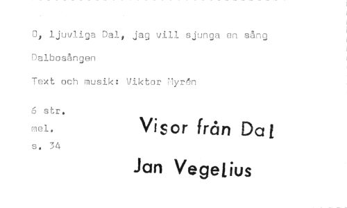 //// 0, ljuvliga Dalt jag vill sjunga en sång //// Dalbosången //// Text och musik: Viktor Myrån //// 6 str. mel, Visor från Da //// s. 34 Jan Vegeiius ////