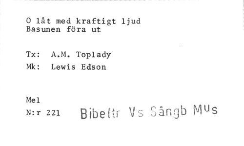 //// 0 låt med kraftigt ljud Basunen föra ut //// Tx: A.M. Toplady Mk: Lewis Edson Mel //// N:r 221 Bibeits Vs Sångb MUS ////