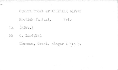 //// 0:mitt bröst af tjusning bäfvar //// Erotisk fantasi. //// (Afze.) //// 1k 0. Lindblad //// hunman, Trest. sånger I Nto 3. ////