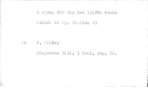 //// 0 sjung för nig den ljufVe visan rjelodi ur Op. Oharles VI //// Lk F. Lalbvy //// Sångarens Bibi. I San].. Pag. 92. ////