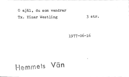 //// 0 själ, du som vandrar //// Tx. Einar Westling 3 str. //// 1977-06-16 //// Råmenets Vän ////