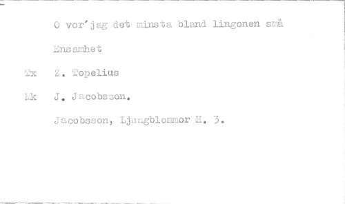 //// 0 vor'jag det minsta bland lingonen srå //// Ensanhet //// Z. Topelius //// Tvac J. Jacobsson. //// Jacobsson, Lj cgblommor H. 3. ////
