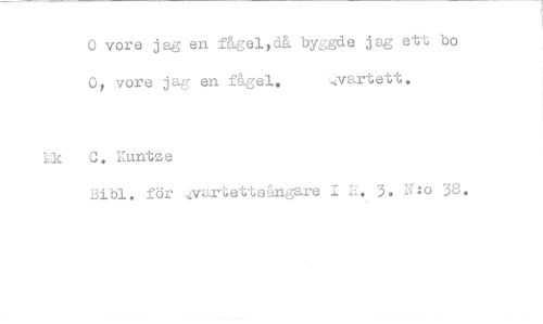 //// 0 vore jag en fågel>då byggde jag ett bo //// 0, vore jag en fågel. ,..vartett. //// ik 0. Kuntze //// för rirlettsångare 1 L. 3. N:o 38. ////