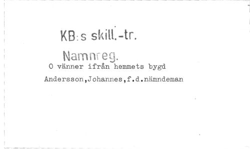 //// KB: s skal-tr. //// Namiveg. //// 0 vänner ifrån hemmets bygd Andersson,Johannes,f.d.nämndeman ////
