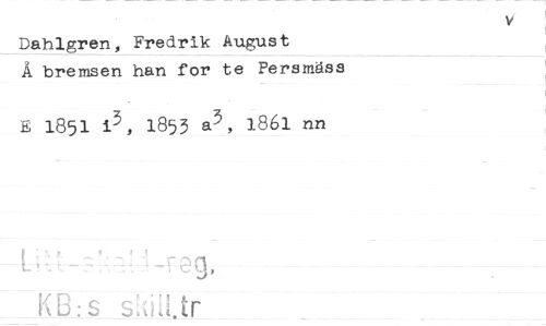 //// Dahlgren, Fredrik August //// Å bremsen han for te Persmäss //// E 1851 13, 1853 a3, 1861 nn //// -1- eg, //// K_B:s skilt tr ////