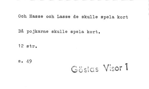 //// Och Hasse och Lasse de skulle spela kort Då pojkarme skulle spela kort. 12 str. //// s. 49 //// Gös S :vor 1 ////