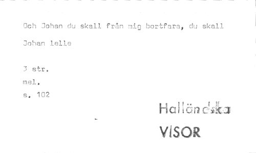 //// Och Johan du skall från mig bortfara, du skall Johan lalla //// 3 str. mel. //// s. 102 //// Hal ön dilbc.3 //// VISOR ////
