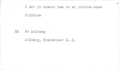 //// Å när ja kommer hem te ml lillade Anna Folkvisa //// Nk Fr Arlberg //// Arlbergy Folkeviser H. 2. ////