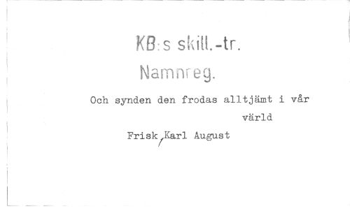 //// skit1.-tr. //// Narnnreg. //// Och synden den frodas alltjämt i vår //// värld //// Frisk Karl August ////