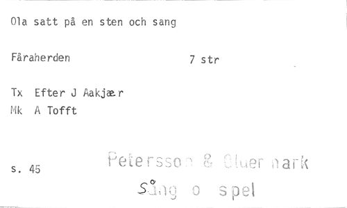 //// Ola satt på en sten och sang //// Fåraherden 7 str //// Tx Efter J Aakjar Nk A Tofft //// s. 45 tjete rsso : 0 //// r ark //// 7 //// 5: ( ,„„ o s p el ////