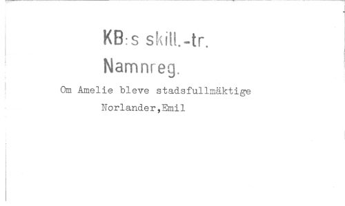 //// KB:s //// Namnreg. //// Om Amelie bleve stadsfullmäktige Norlander,Emil ////