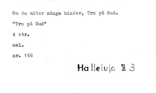 //// Om du möter många hinder, Tro på Gud. "Tro på Gud" //// 4 str. //// nr. 166 //// Ha ////