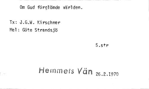 //// Om Gud förglömde världen. //// Tx: J.G.W. Kirschner Mel: Göte Strandsjö //// 5.str //// Hemmets Vän 26.2.1970 ////