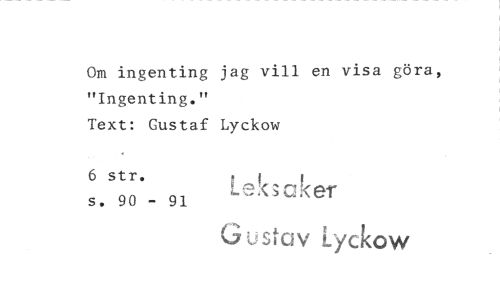 //// Om ingenting jag vill en visa göra, "Ingenting." //// Text: Gustaf Lyckow //// 6 str. Le baker //// s. 90 - 91 Gustav Lyckow ////