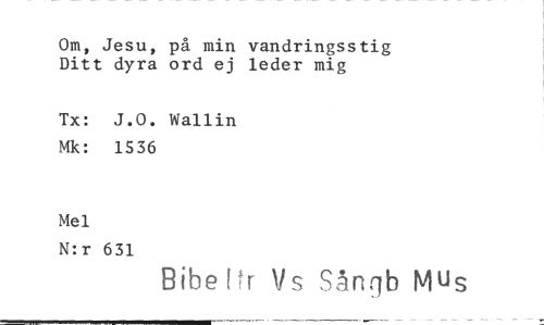 //// Om, Jesu, på min vandringsstig Ditt dyra ord ej leder mig //// Tx: J.O. Wallin Mk: 1536 //// Mel //// N:r 631 //// Bibe Pr V s Sångb Mus //// ..oemeemmeemenwe ////