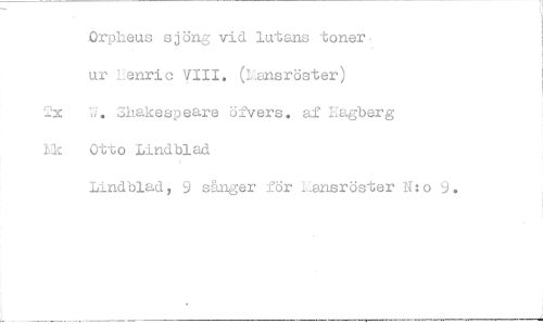 //// Orpheus sjöng vid lutans toner- //// ur Lsnric VIII. ( sröster) //// 2x Shakespeare ölvers. af Kagberg //// U Otto Lindblad //// Lindblad> 9 sånger för ::_ansröster N:o 9. ////