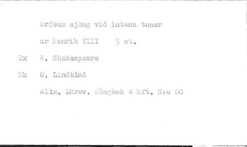 //// Orfeus sjöng vid lutans toner //// ur Henrik VIII 3 st. //// ix W. Shakespeare //// kk 0. Lindblad //// Allm. Lärov. Sångbok 4 hft, N:o 80 //// ili^I^11111•111.1111~~11^11i~1~~~~1•11~1111^IMMIemem...mr ////