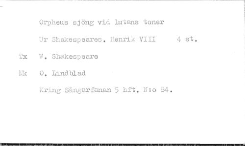 //// Orpheus sjöng vid lutans toner 4st. //// Ur Shakespeares. Henrik VIII //// Tx W. Shakespeare //// Ek 0, Lindblad //// Kring Sångarfanan 5 hft. N: o 84. //// 11111101111111111111111111111.1111111111111111111«ffil IMU IM I ////