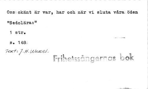 //// Oss okänt är var, har och när vi sluta våra öden "Sedolära:" //// 1 str. s. 1483 //// 74.K11-//tAse4 Fi_71r;R. r ////