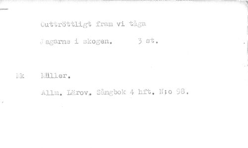 //// Outtröttligt fram vi tåga //// Jagarna i skogen. 3 st. //// Allm. Lärov. nngbok 4 Lit, 140 98. ////