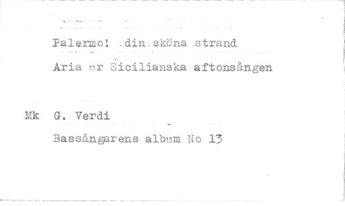 //// Palermo! _din sköna strand //// Aria nr Sicilianska aftonsången //// ulk G. Verdi //// Bassångarens album No 13 ////