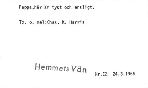 //// Pappa,här är tyst och ensligt. Tx. o. mel:Chas. K. Harris //// Hemmets Vän Nr.12 24.3.1966 ////