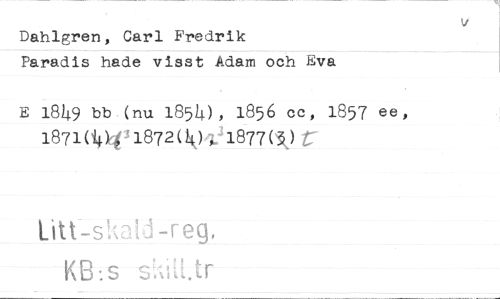 //// Dahlgren, Carl Fredrik //// Paradis hade visst Adam och Eva //// E 1849 bb (nu 1854), 1856 cc, 1857 ee, //// 1871(041872(4),, 1877() //// KB:s sAiWtr ////