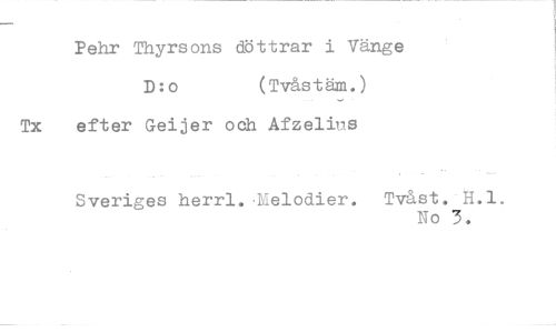 //// Pehr Thyrsons döttrar i Vänge //// D:o (Tvåstäm.) //// Tx efter Geijer och Afzelilis //// Sveriges herrl..ielodier. Tvåst. H.1. //// No 3. ////