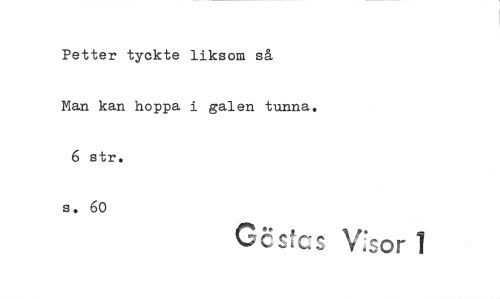 //// Petter tyckte liksom så //// Man kan hoppa i galen tunna. 6 str. //// s. 60 //// s-o rsor 1 ////