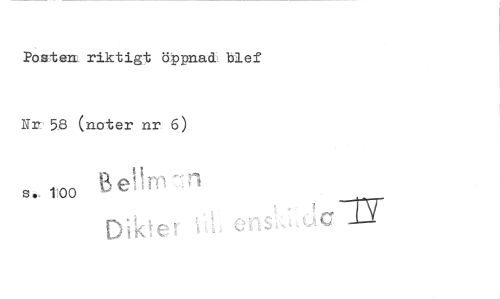 //// Posten riktigt öppnad., bier //// Nr 58 (noter nr 6) //// 94, 100 eUrct - n //// • C i C //// Dikter h' -"`-• ////