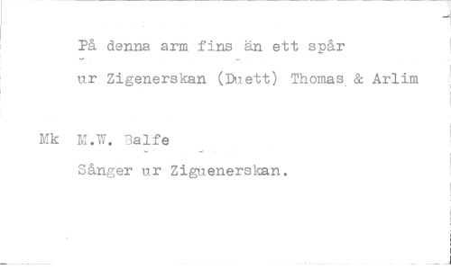 //// På denna arm fins än ett spår ur Zigenerskan (Duett) Thomas & Arlim //// Mk M.W. Balfe //// Sånger ur Ziguenerskan. ////