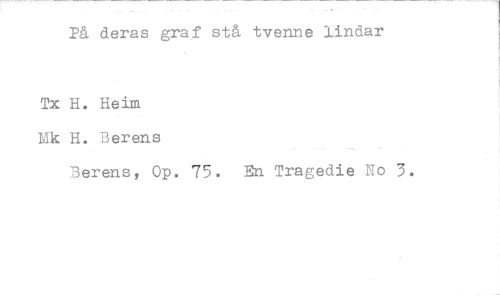 //// På deras graf stå tvenne lindar //// Tx H. Heim Mk H. Berens //// Berens, Op. 75. En Tragedie No 3. ////
