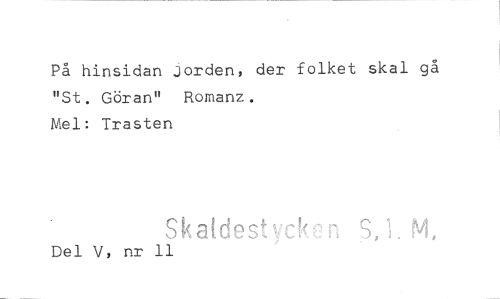 //// På hinsidan jorden, der folket skal gå "St. Göran" Romanz. Mel: Trasten //// P . . //// Del V, nr 11 ////