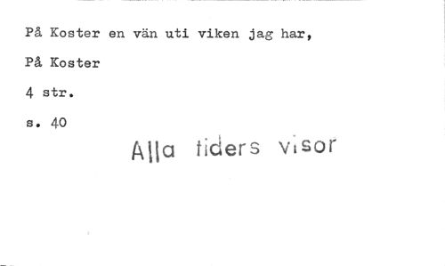 //// På Koster en vän uti viken jag har, På Koster //// 4 str. s. 40 //// glia tiders visor ////