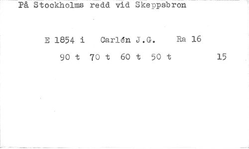 //// På Stockholms redd vid llcepsbron //// E 1854 i Carldn J.G. Ra 16 //// 90 t 70 t 60 t 50 t 15 ////