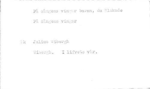 //// På sångens buren, du 13kade //// På sångens vingar //// Lic Julius Wibergh //// dioers,1 . 1 lifve-ts vår. ////