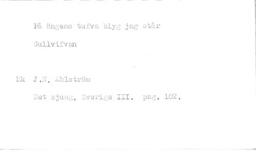//// Få ängens tufva blyg jag står Gullvifvan //// Ek J.N. Åhlström //// Det sjung. Jveri,e III. pag. 102. ////
