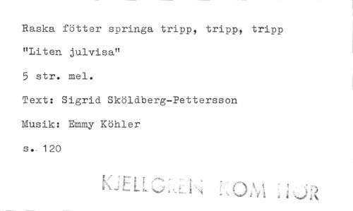//// Raska fötter springa tripp, tripp, tripp //// "Liten julvisa" //// 5 str. mel. //// Text: Sigrid Sköldberg-Pettersson //// MUsik: Emmy Köhler //// s.: 120 //// w® i ////