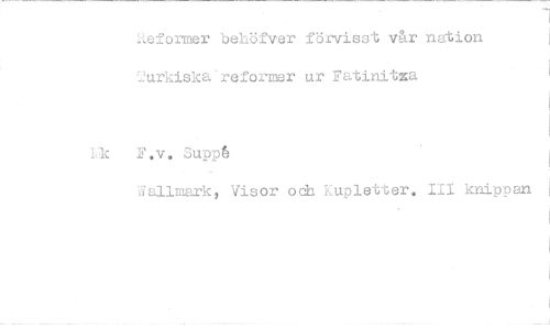 //// ieformer behöfver förvisst vår nation Atrkiska'reforner ur Fatinitxa //// F.v. Suppb //// Wallmark, Visor och Kupletter. III knippan ////