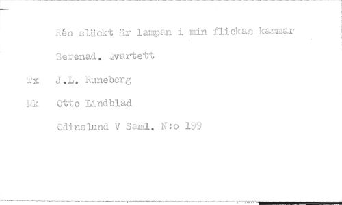 //// An släckt är lampan i min Flickas kammar //// Serenad, :,-vartett_ //// Tx J.L. Runeberg //// 14c Otto Lindblad //// Odinslund V Saml. N:o 199 ////